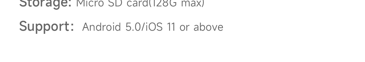 | Storage | Micro SD card (128G) strorage/Cloud storage | ||